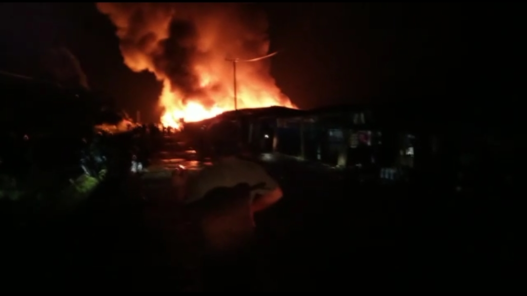 SARAMBANG- Kebakaran di Pasar Desa Libukan Mandiri Kecamatan Towuti, Luwu Timur terjadi, Senin 03/04/23, malam.